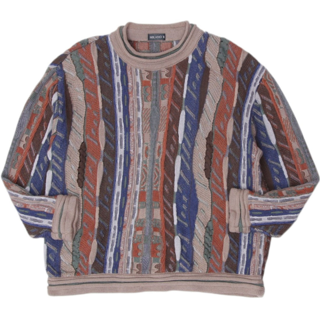 Vintage Sweater Multi Color 3D Pattern Coogi Style Knitwear