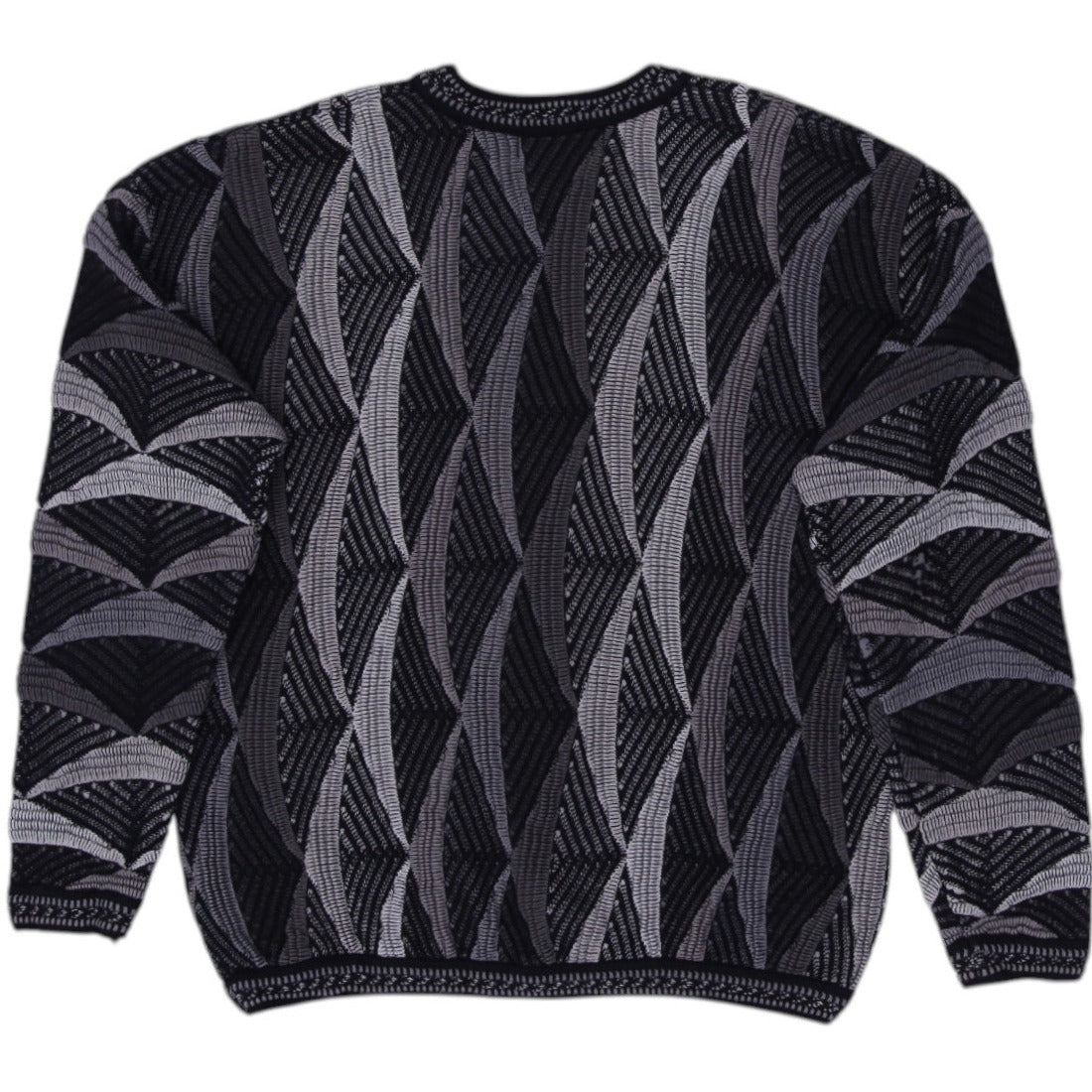 Vintage Tundra Sweater Black 3D Knit Geometric Pattern Large