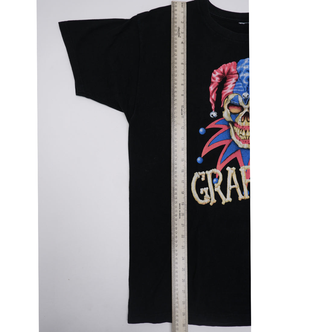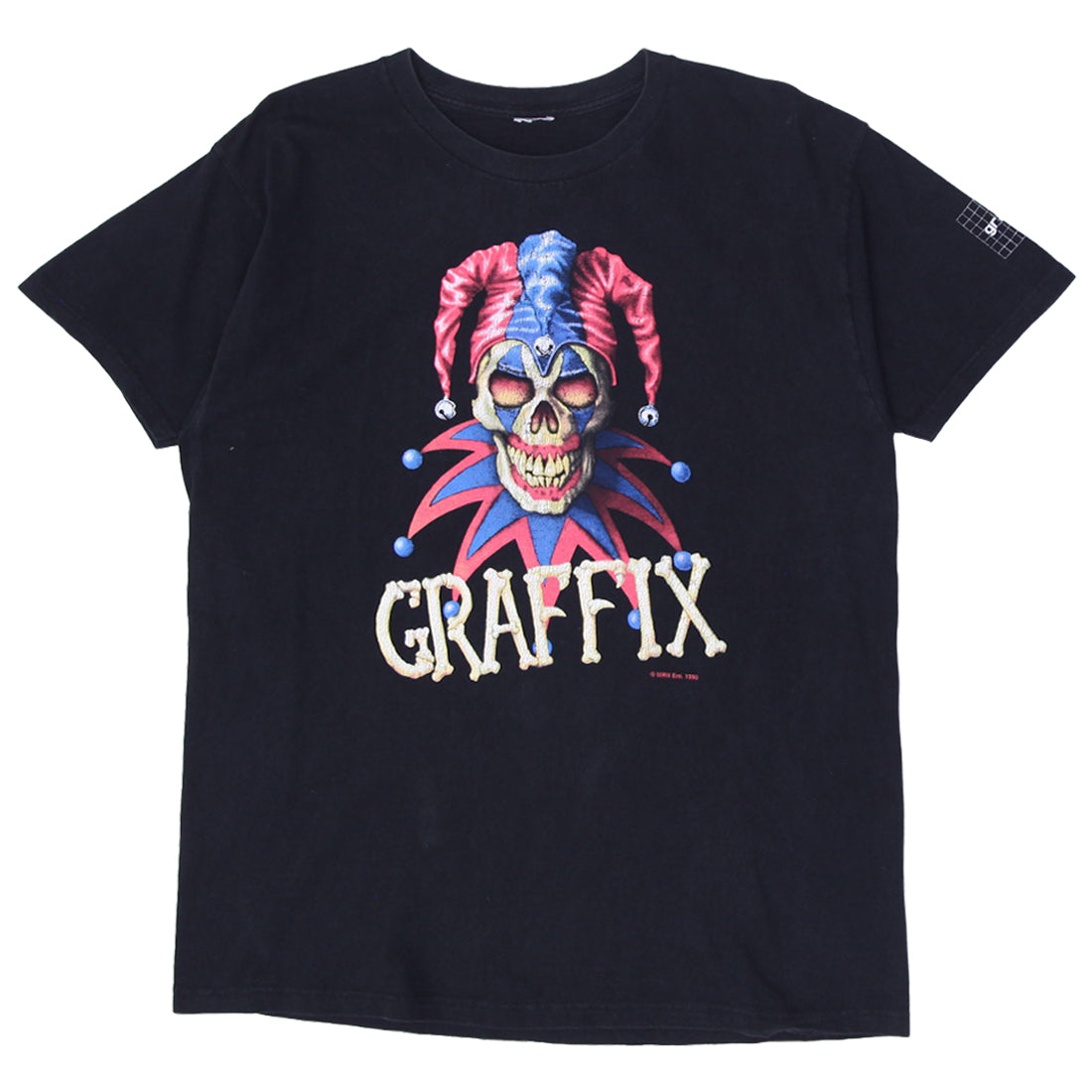 Vintage 1990 Graffix Jester Skelton Clown Black T-Shirt