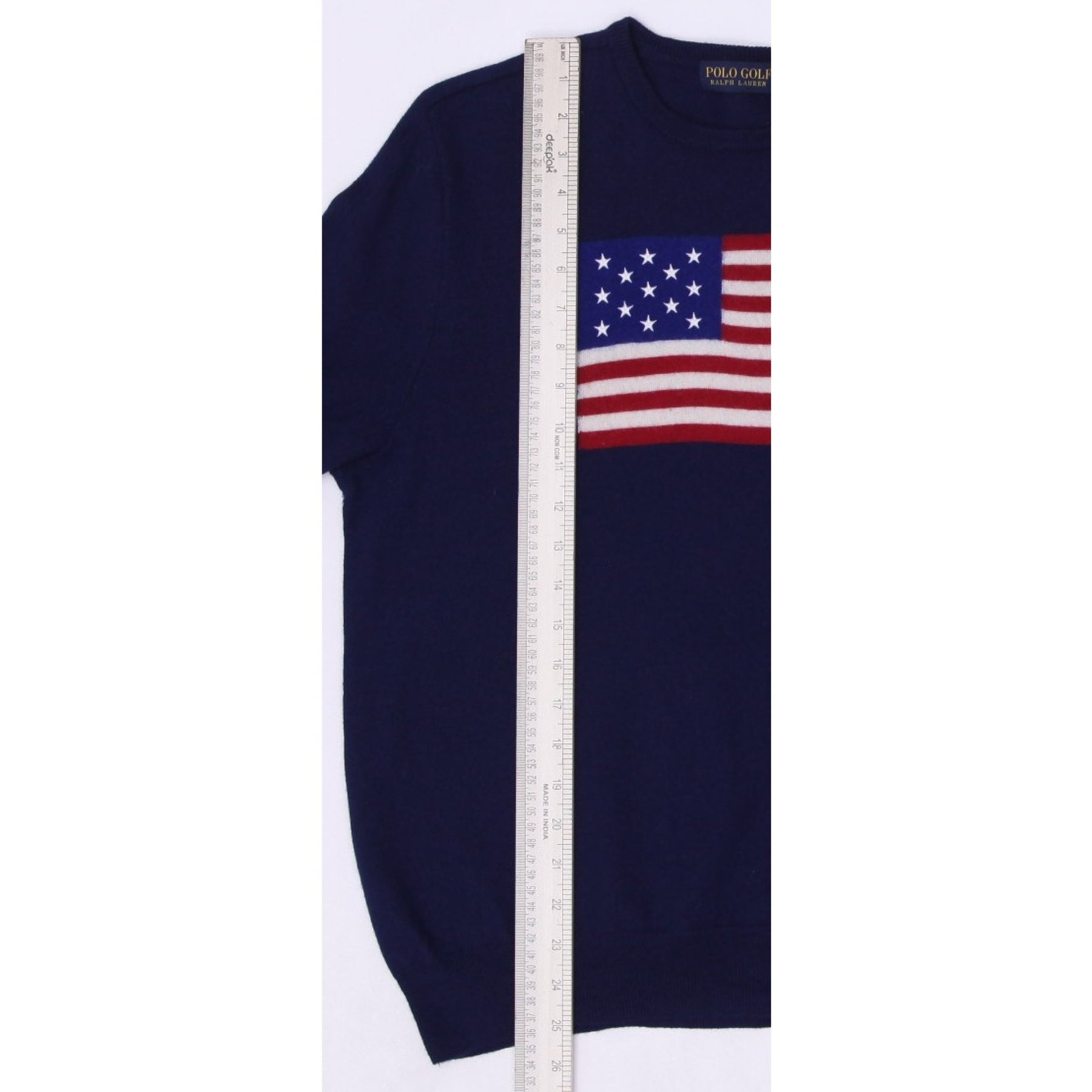 Vintage Polo Golf Ralph Lauren Navy American Flag Knit Sweater L