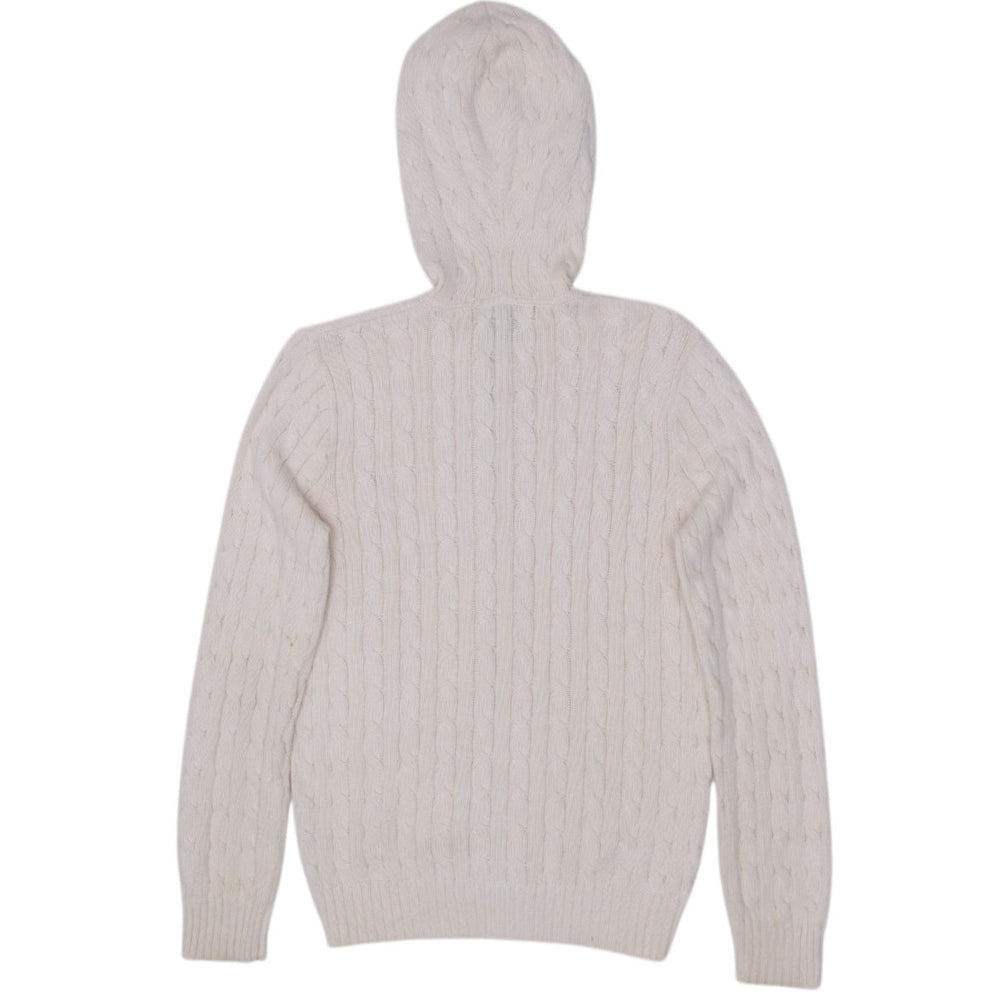 Vintage Womens Ralph Lauren Sport Hoodie Cream Cable Knit Full Zip Large