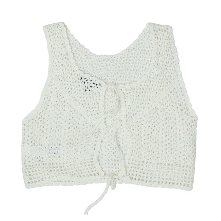 Y2K Crochet Sleeveless Back Tie Crop Top