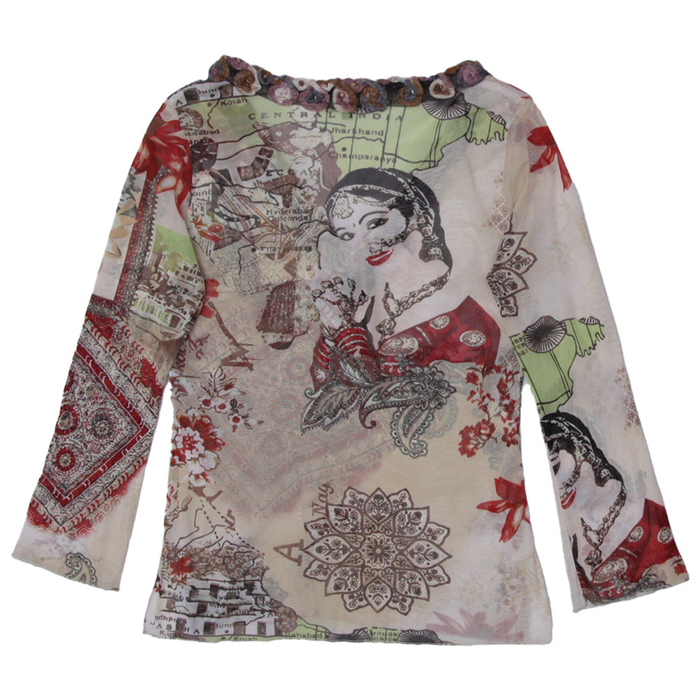 Y2K Mesh Long Sleeve Printed Top