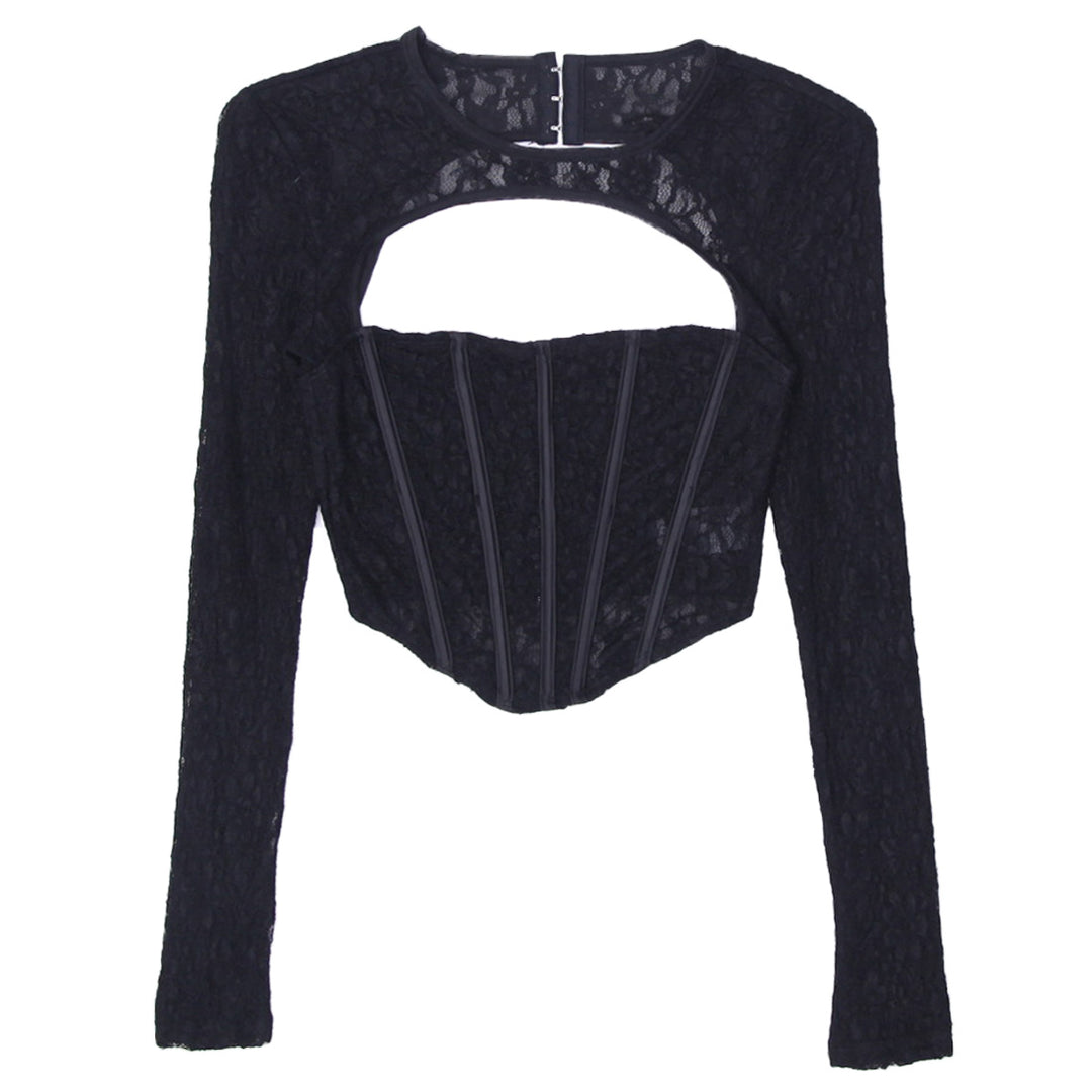 Y2K Ladies V-Neck Long Sleeve Mesh Tops
