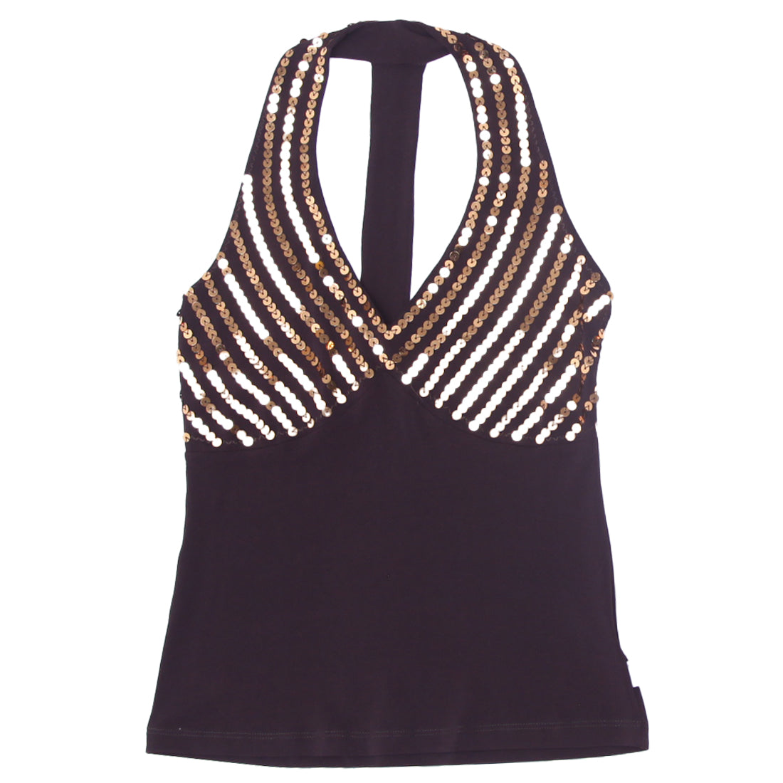 Y2K Ladies Brown Sequin-Embellished Halter Swimwear Top Size S