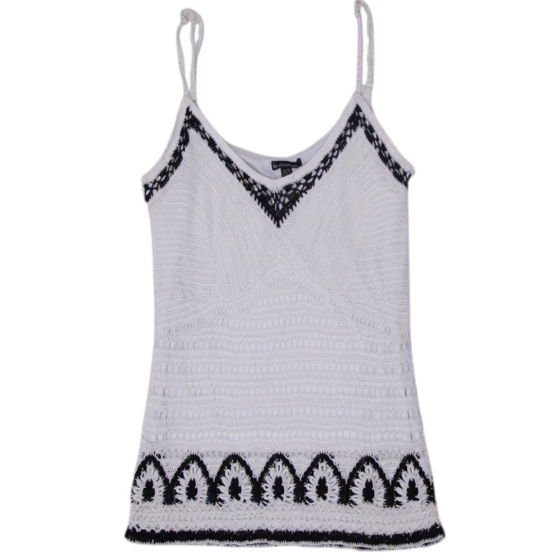 Y2K Ladies Crochet Tank Top White Black Sleeveless Size XL
