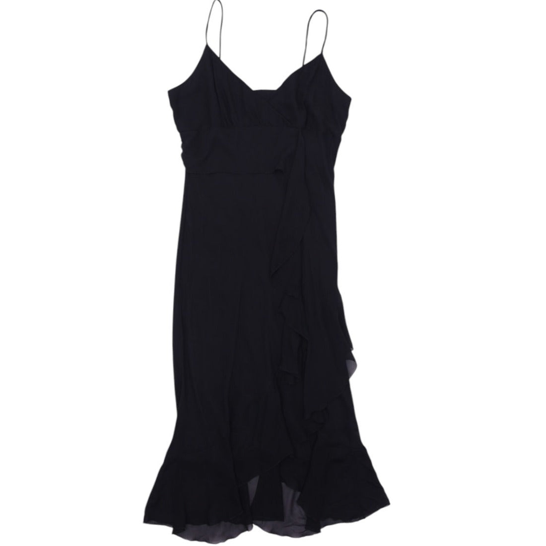 Y2K Ladies Lori M Black Midi Dress Spaghetti Straps Ruffle Chic
