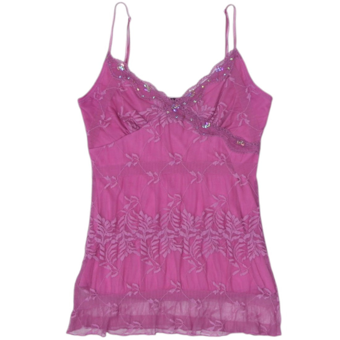 Y2K Ladies Pink Sheer Floral Embroidered Camisole Made in USA Size M
