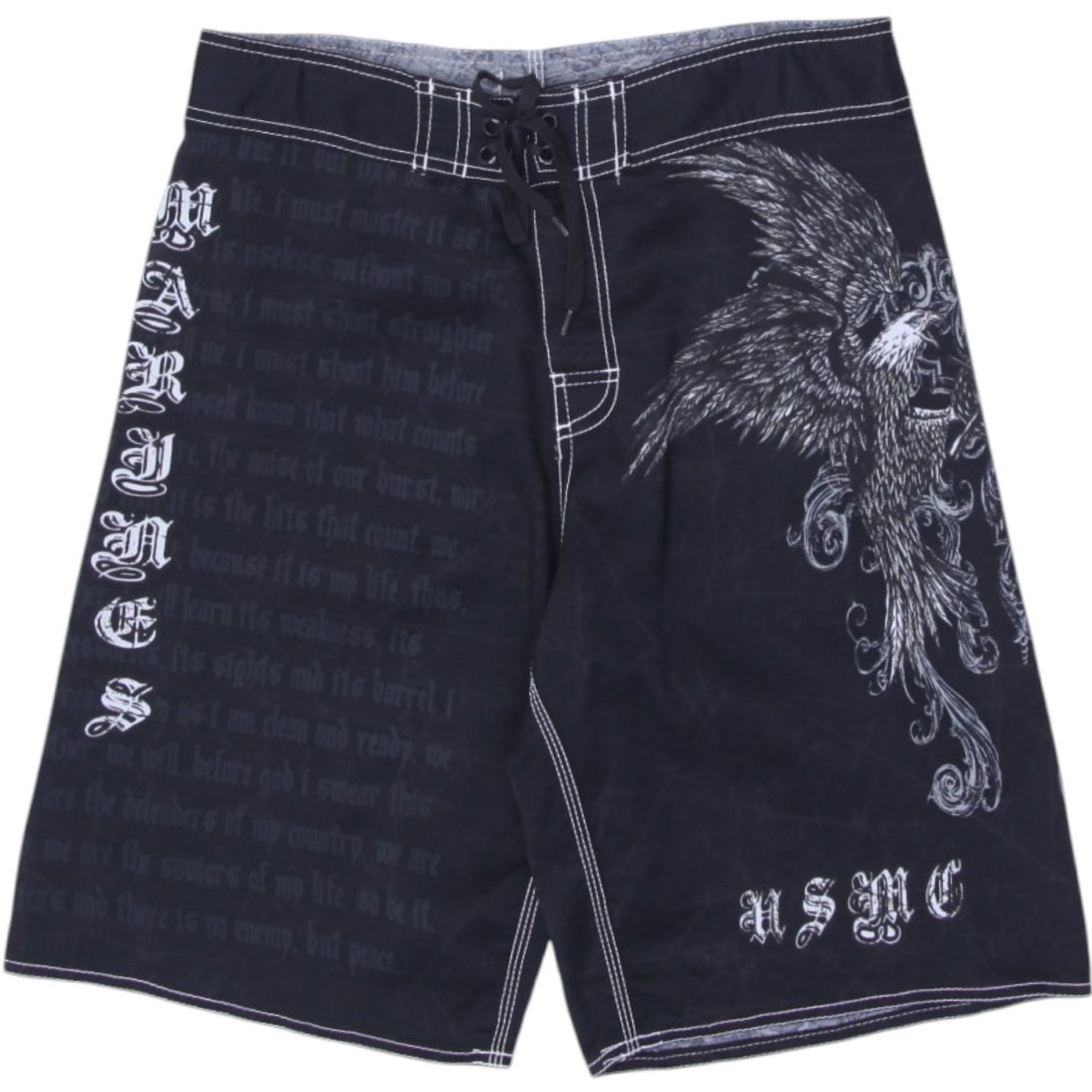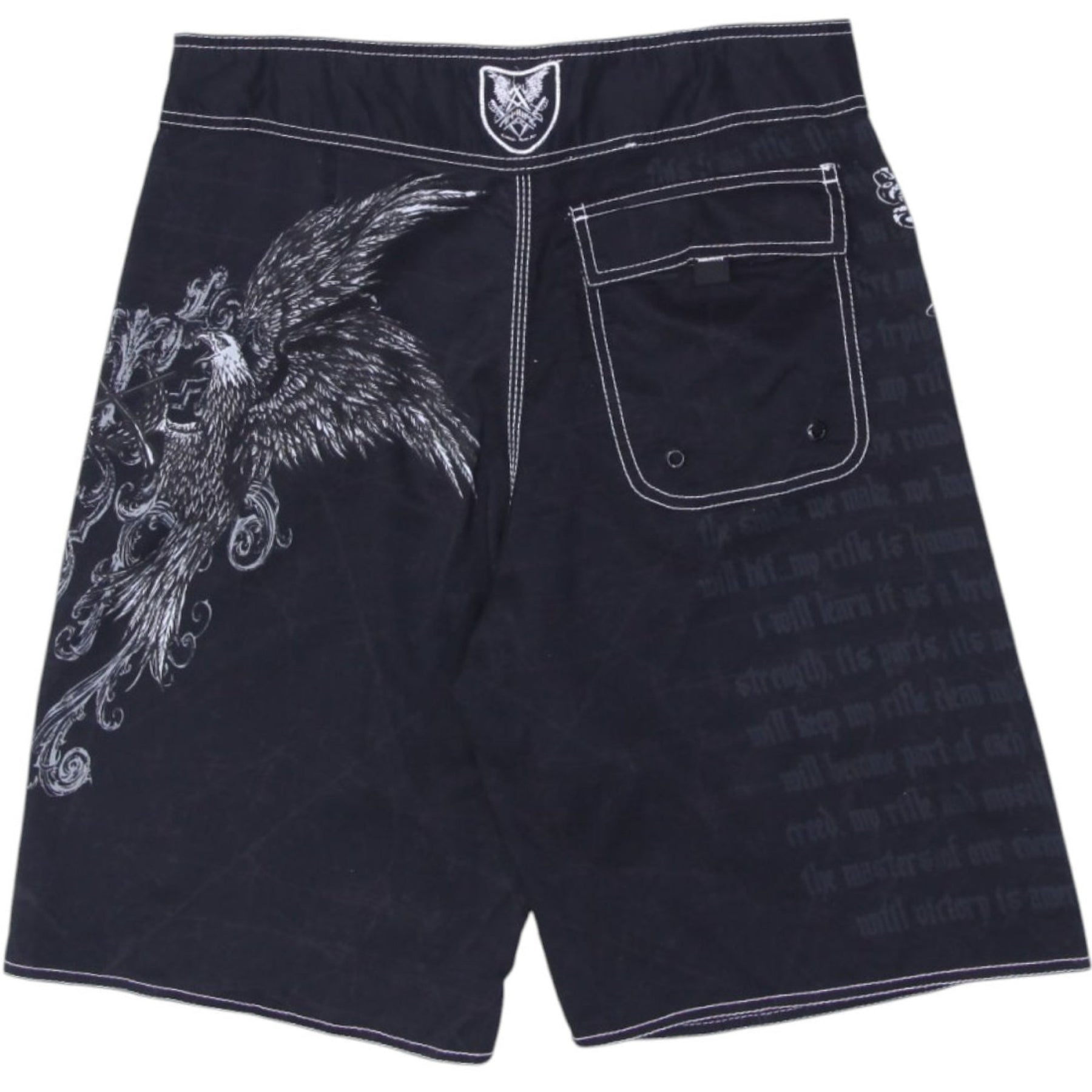 Y2K Mens Board Shorts Black Graphic Eagle