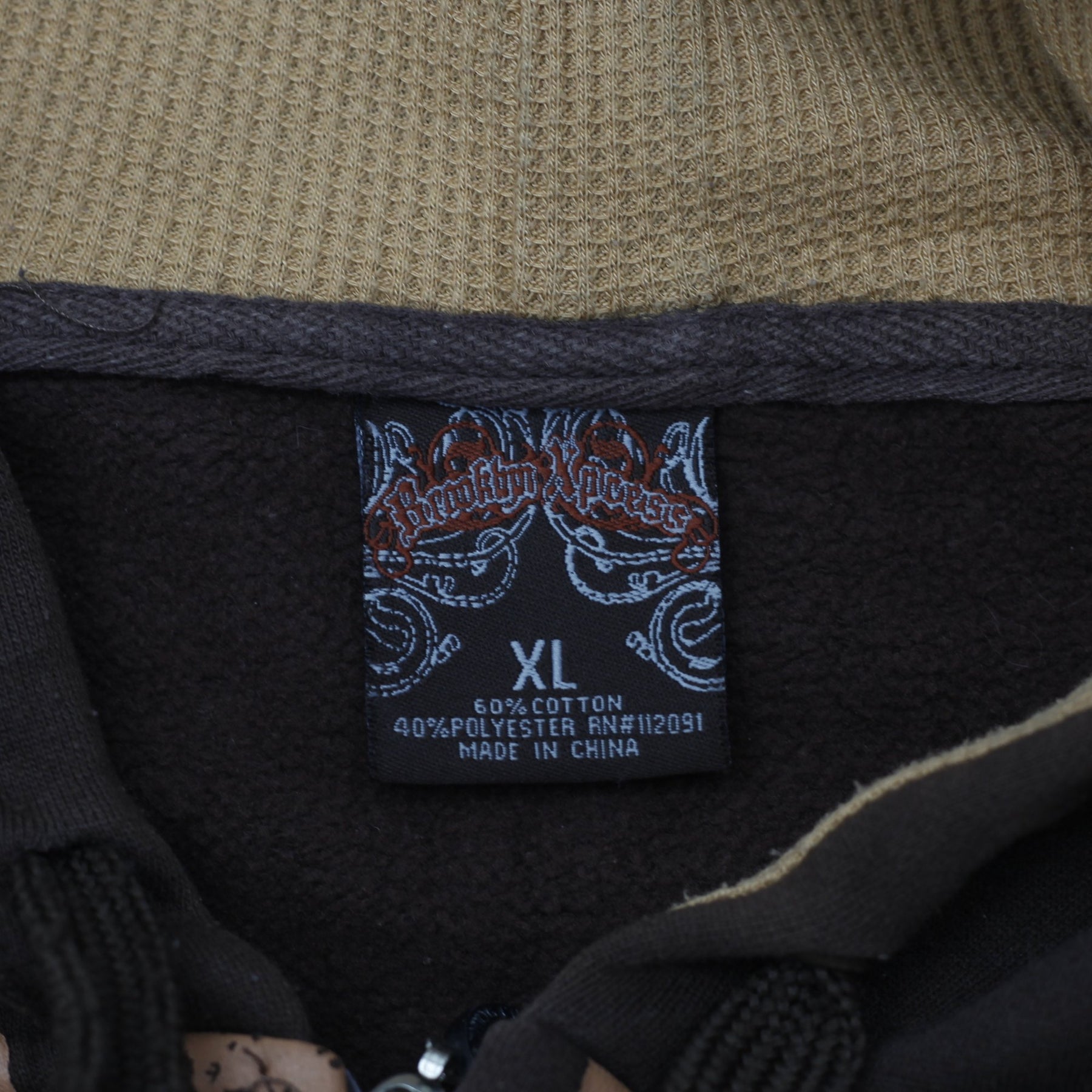 Y2K Mens Brooklyn Express Hoodie Brown Graphic Full Zip Size XL