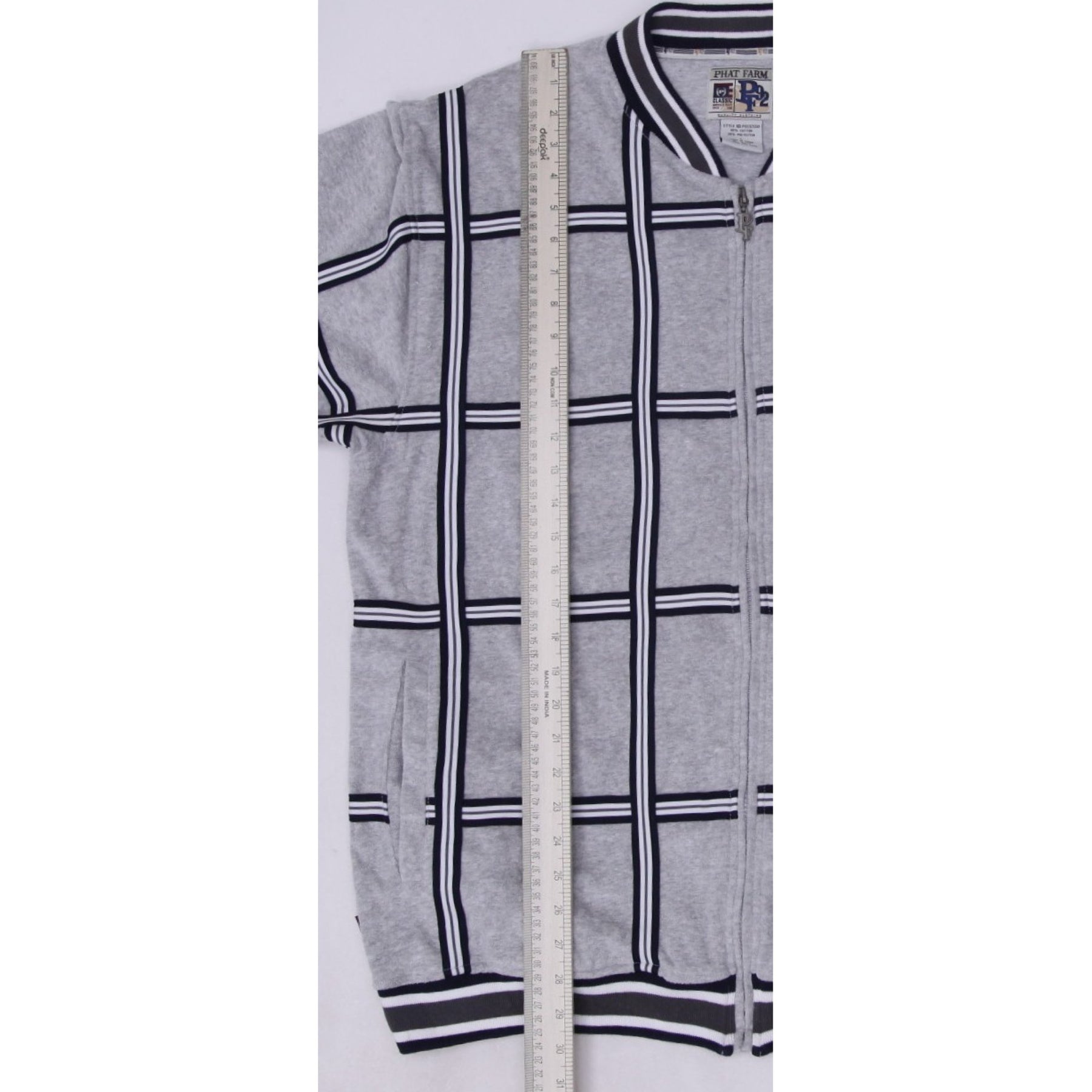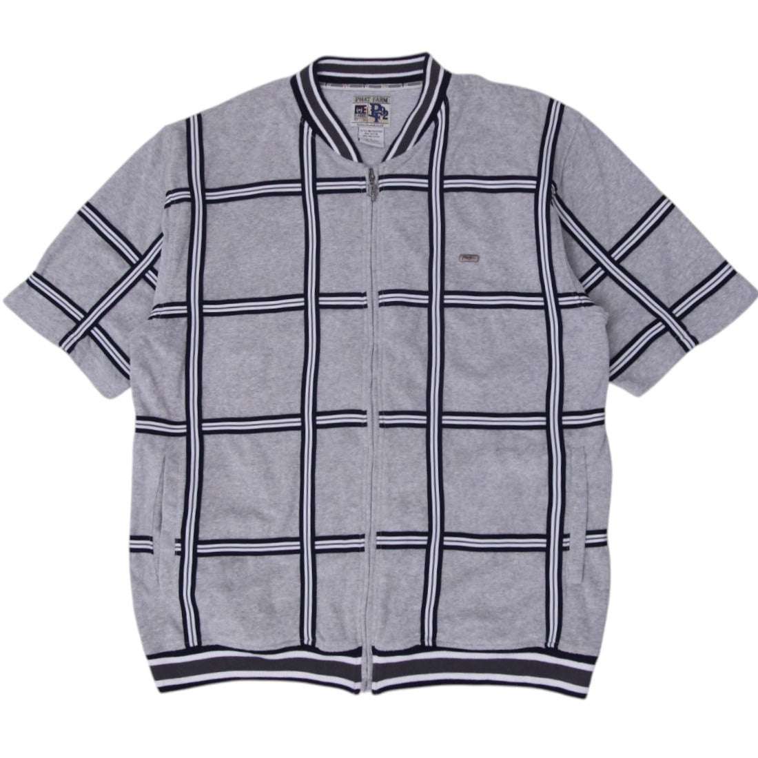 Y2K Mens Phat Farm Polo Gray Checkered Zip Up Velour Jacket L