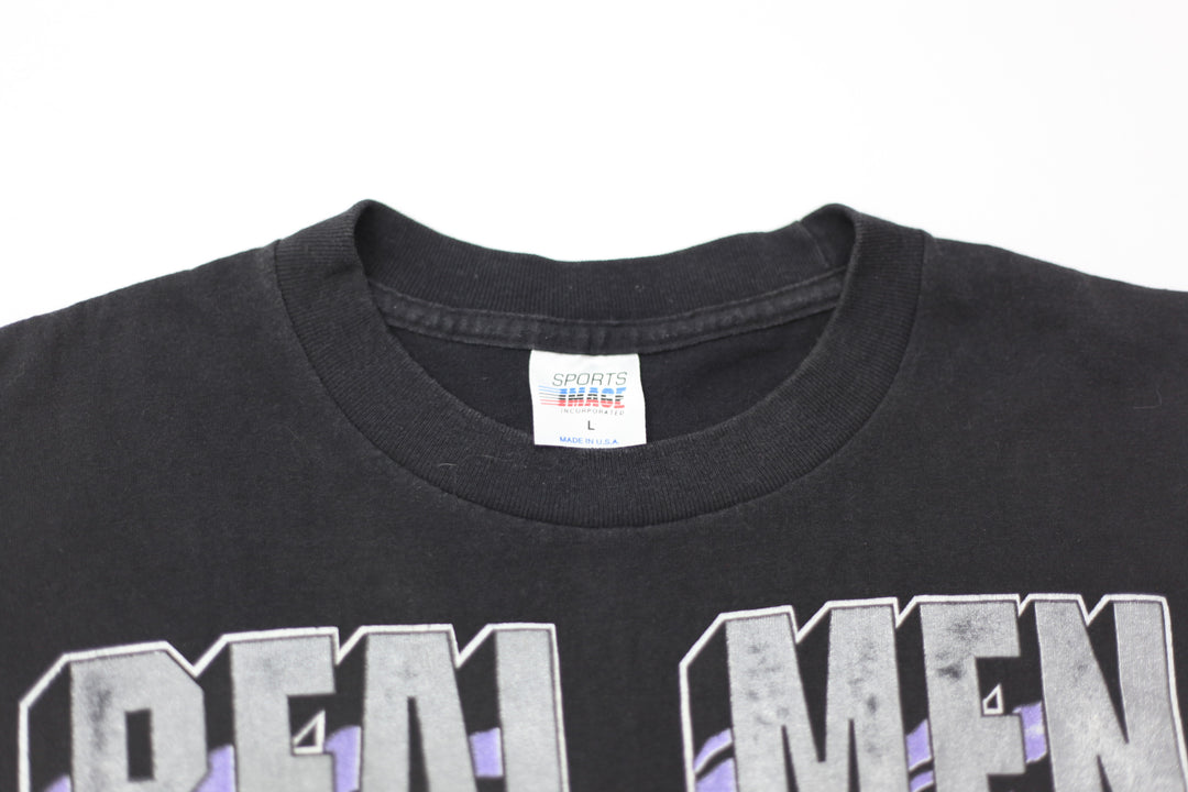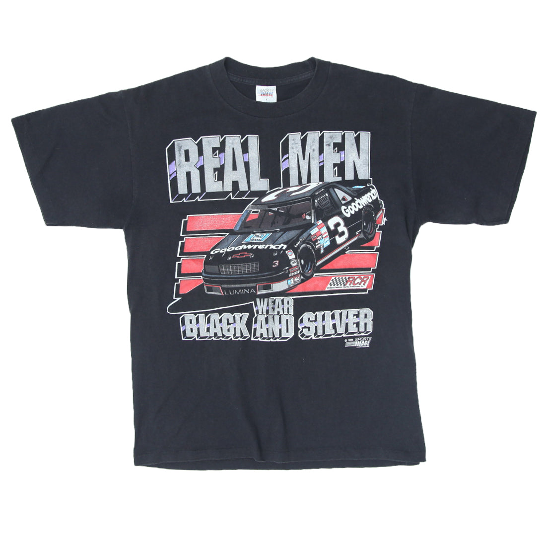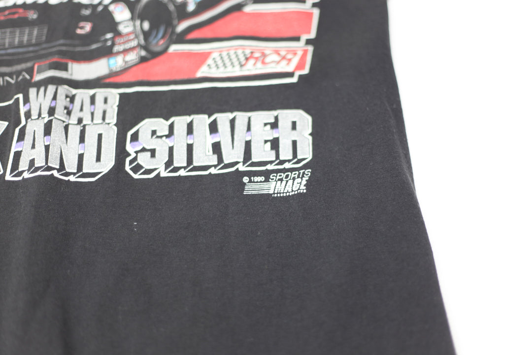 1990 Vintage Real Men Wear Black & Silver Racing T-Shirt S.Stitch Made In USA L