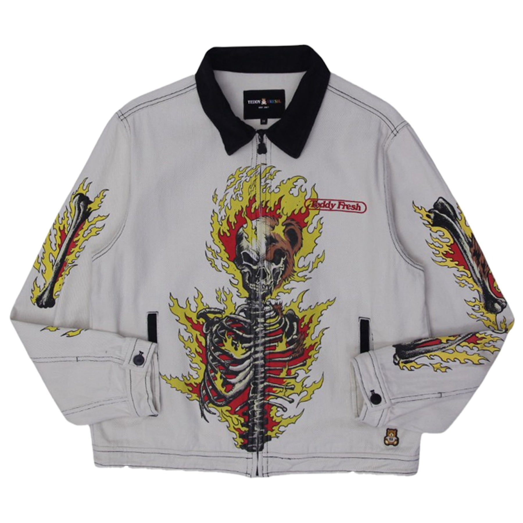 Mens Teddy Fresh Inflames Bear Zipper Denim Jacket