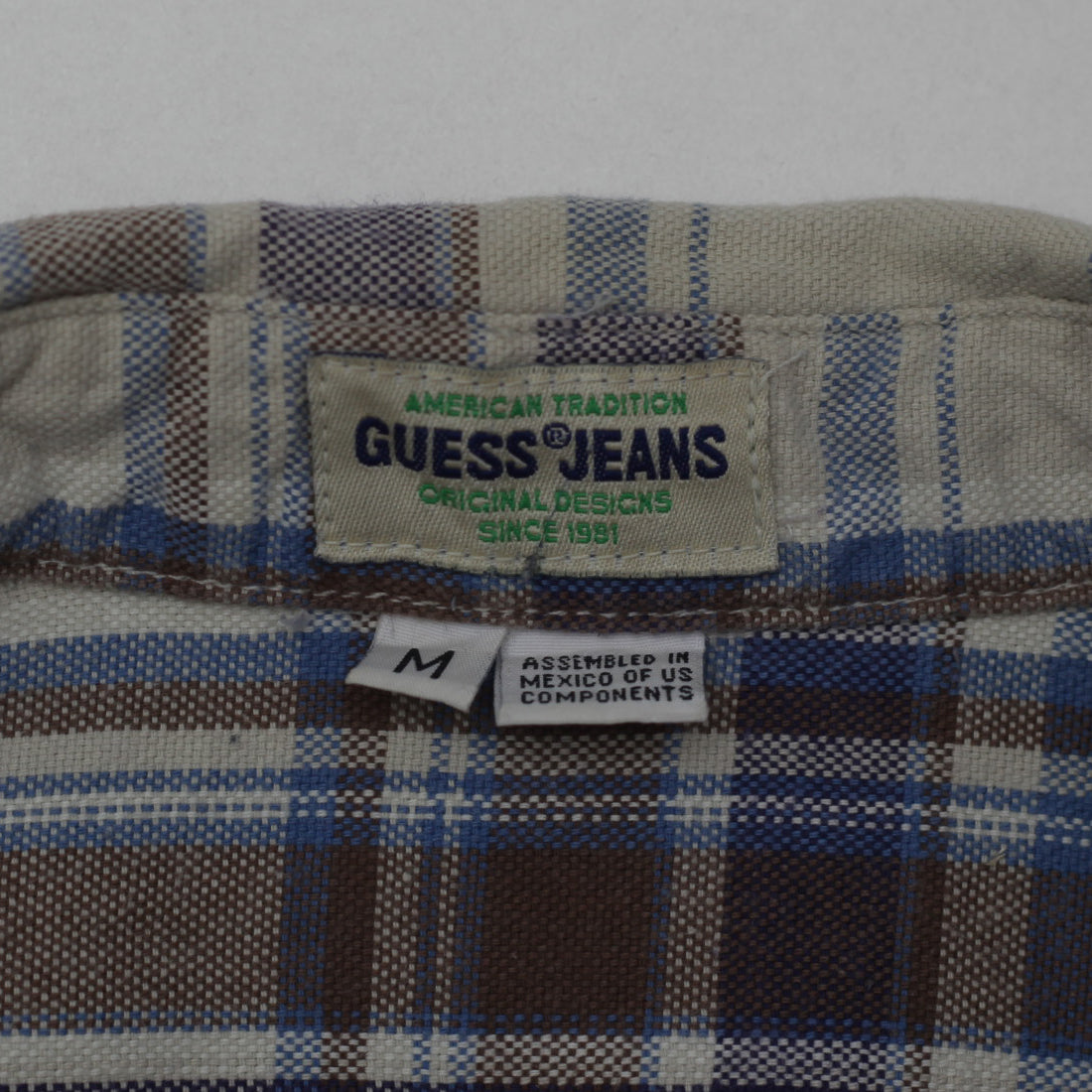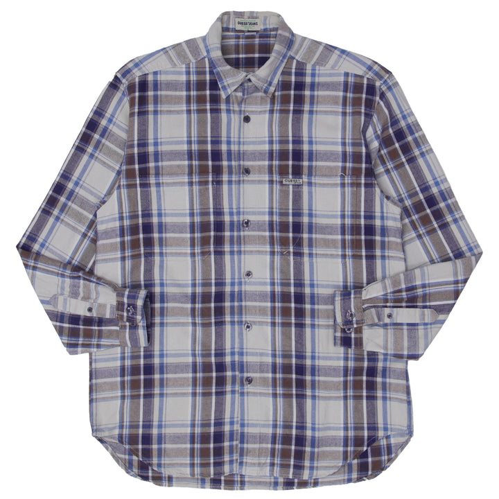 Vintage Guess Jeans Plaid Button-Up Shirt 1980's Style Size M