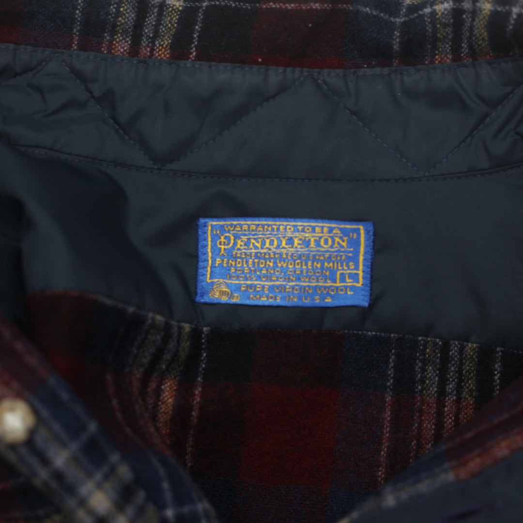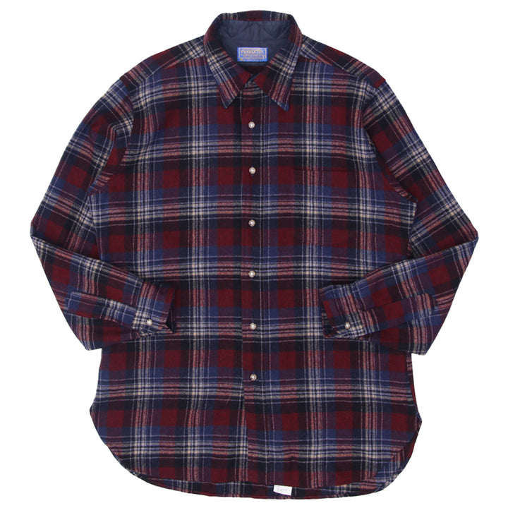 Vintage Pendleton Pure Virgin Wool Plaid Flannel Shirt Made In USA Size L