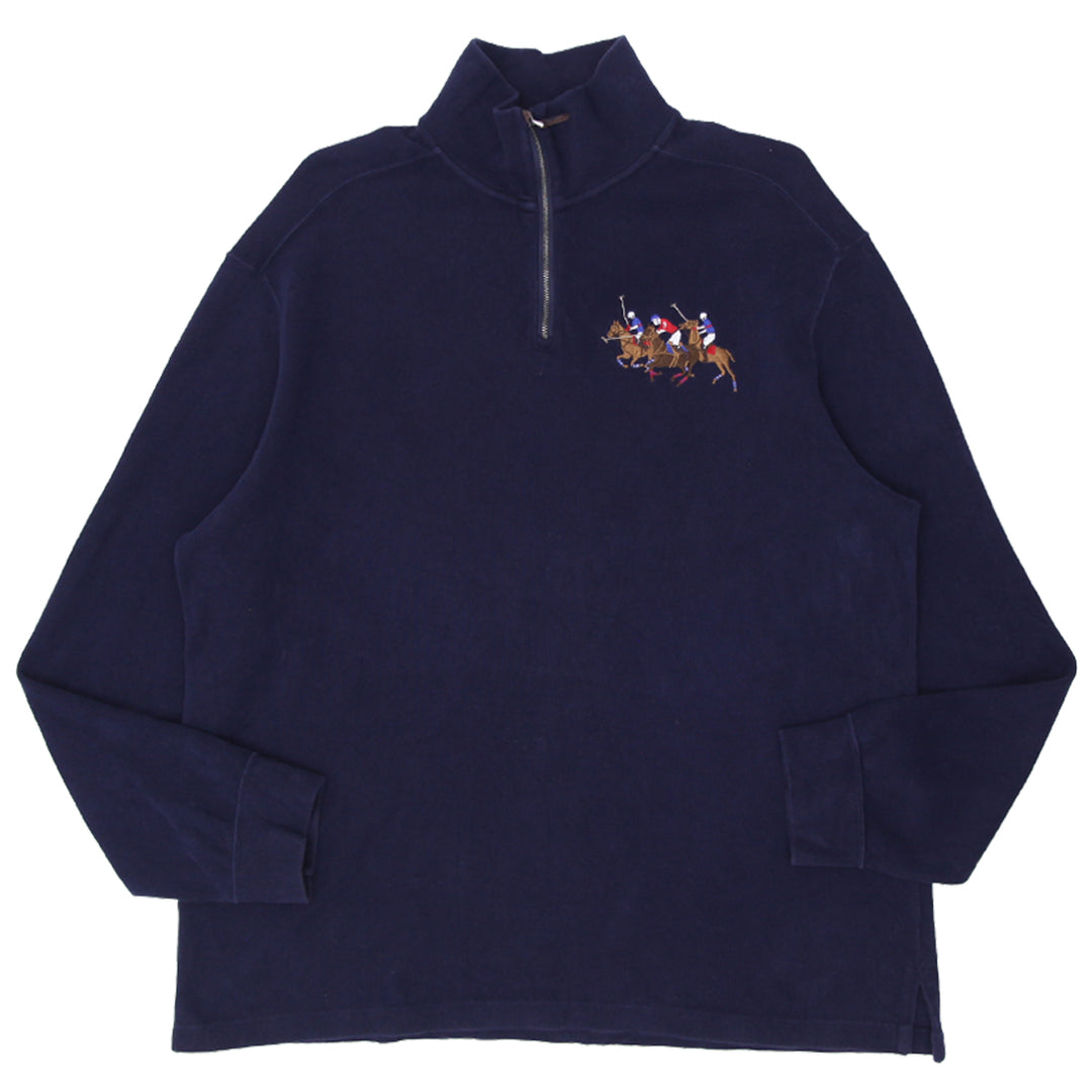 Mens Polo Ralph Lauren Quarter Zip Pony Embroidered Pullover Navy XL
